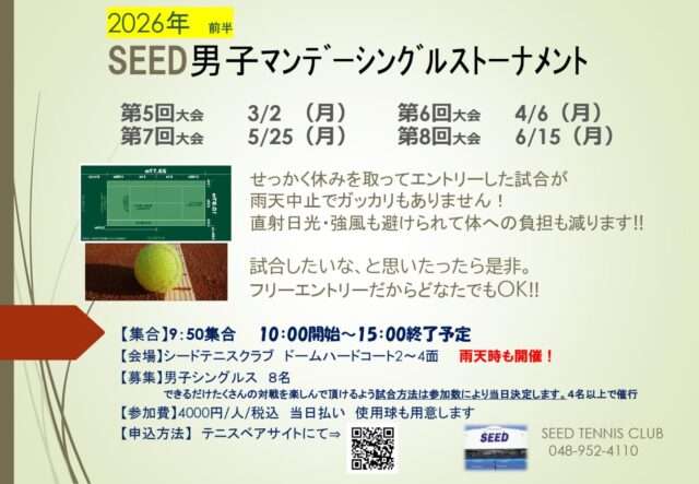 皆様に愛されて開催していましたSEED男子中級シングルス大会ですが、