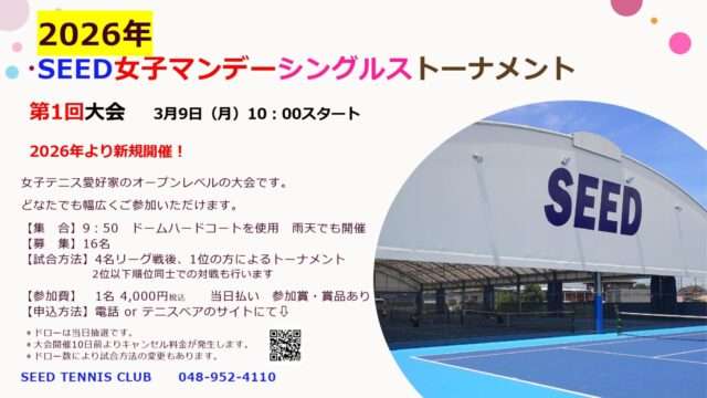 女子シングルスの大会を月曜日に開催のこちらの大会に!