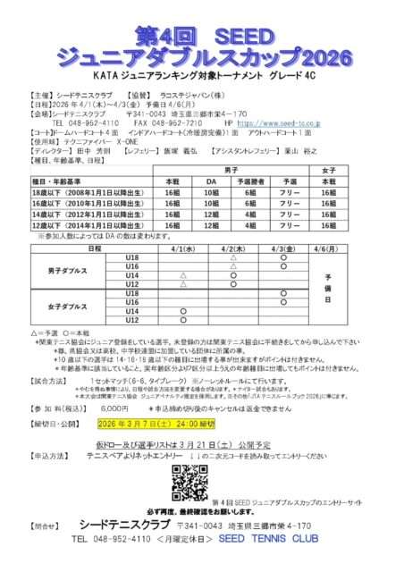 第4回SEEDジュニアダブルスカップ2026 大会詳細要項