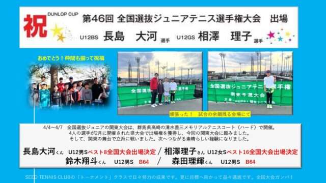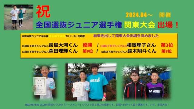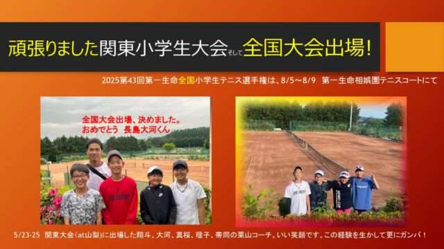 全国選抜ジュニアテニス選手権関東大会の結果と2名の祝全国選抜ジュニアテニス選手権出場