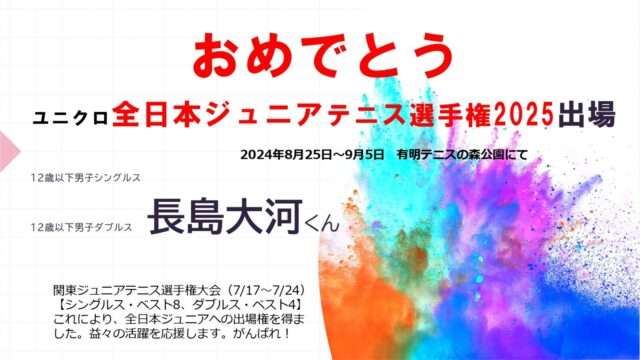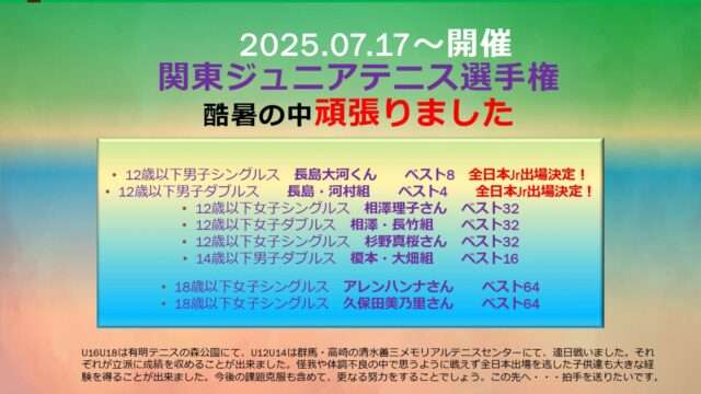 【7月】8部門の関東ジュニアテニス選手権大会の結果と2部門祝全日本ジュニアテニス選手権出場