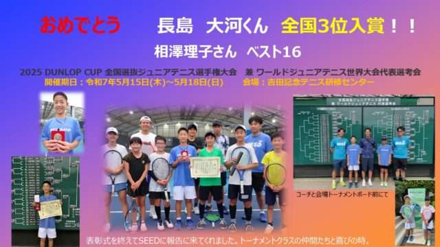 【5月】2名の全国選抜ジュニアテニス選手権大会結果と 祝全国3位入賞