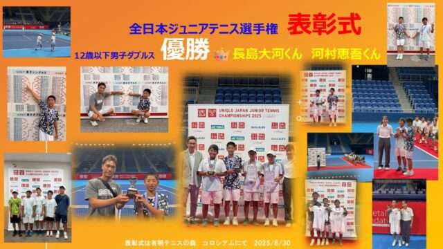 全日本ジュニアテニス選手権 12歳以下男子ダブルス 祝優勝・・表彰式の模様